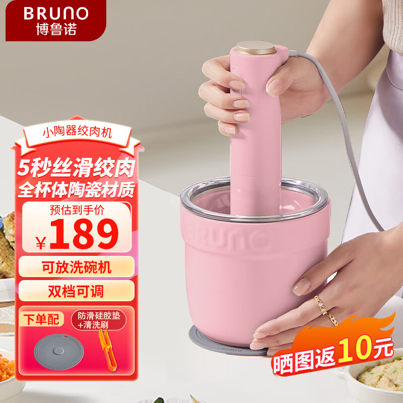 BRUNO绞肉机佐料机家用套娃绞馅机碎肉菜机电动多功能辅食料理机磨粉打蒜搅拌机陶瓷标配款-牛奶紫价格:189.00元!