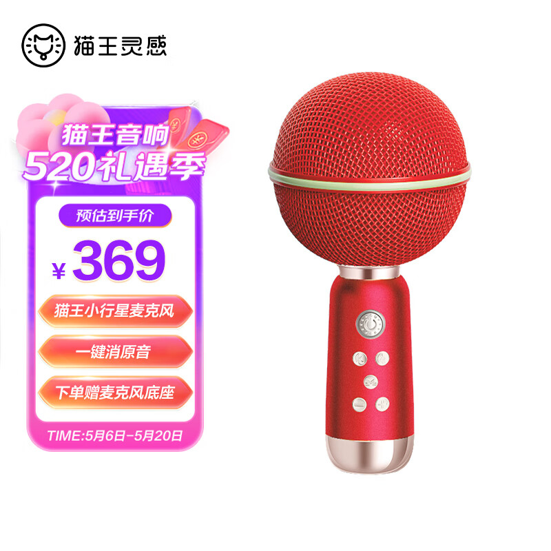 猫王收音机猫王灵感小行星麦克风音响一体式话筒家用K歌手机K歌宝智能降噪超长续航娱乐家庭KTV 浩瀚红价格:369.00元!