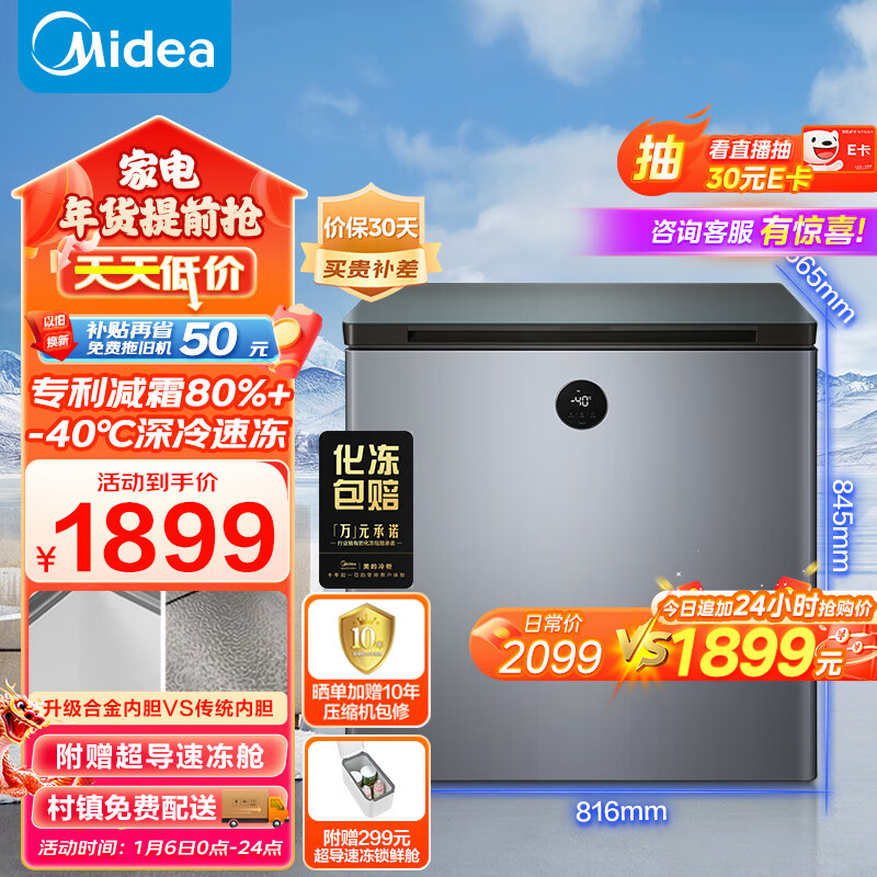 美的(Midea)201升-40℃超低温深冷速冻锁鲜冰柜 电子控温减霜节能家用商用海鲜冷柜 母乳小冰箱 BD/BC-201KEMS价格:1999.00元!