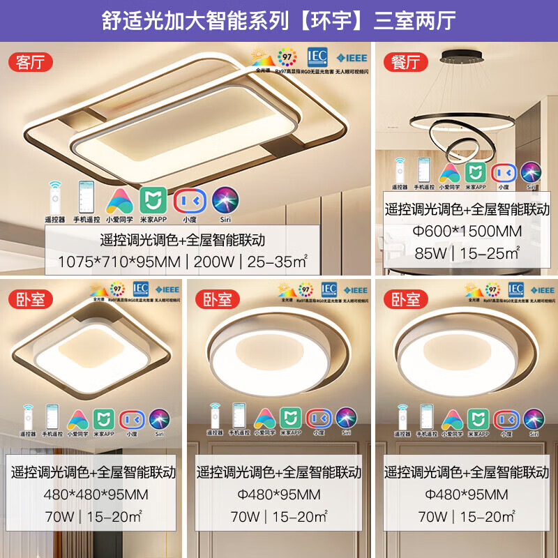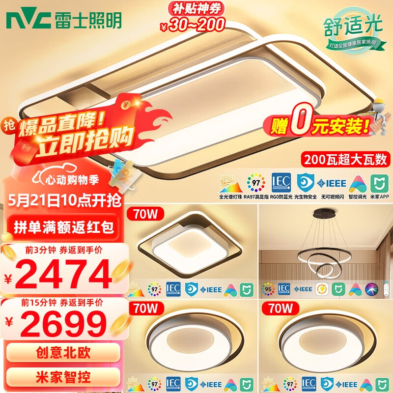 雷士(NVC)LED吸顶灯全屋灯饰客厅卧室餐厅米家语音全智控Ra97大尺寸环宇A价格:4998.00元!