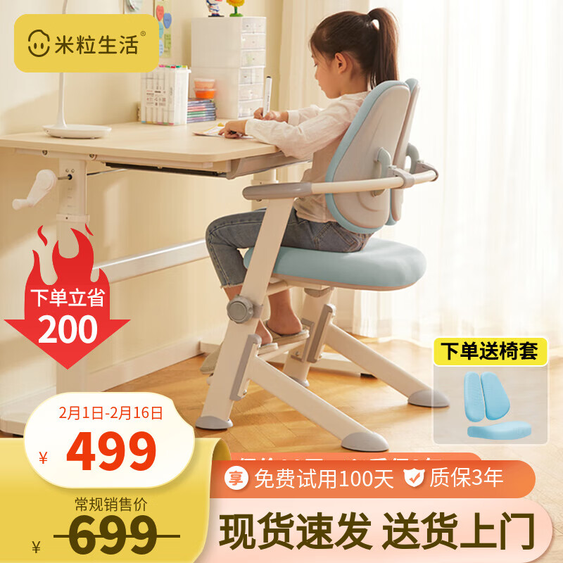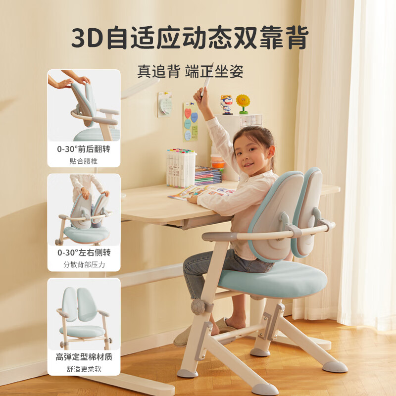 米粒生活SF1儿童学习椅子书房写字椅小学生家用可升降座椅凳追背椅130F蓝价格:699.00元!