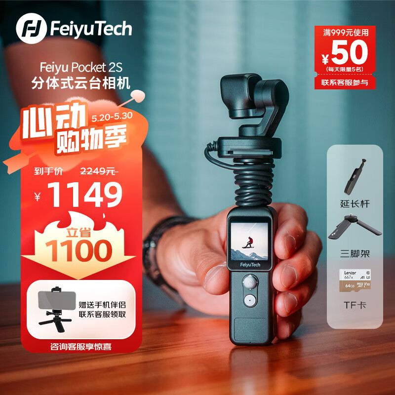 FeiyuTech飞宇Feiyu pocket2S口袋云台相机套装 智能美颜运动相机 手持高清增稳vlog摄影机 全家福套餐价格:1449.00元!