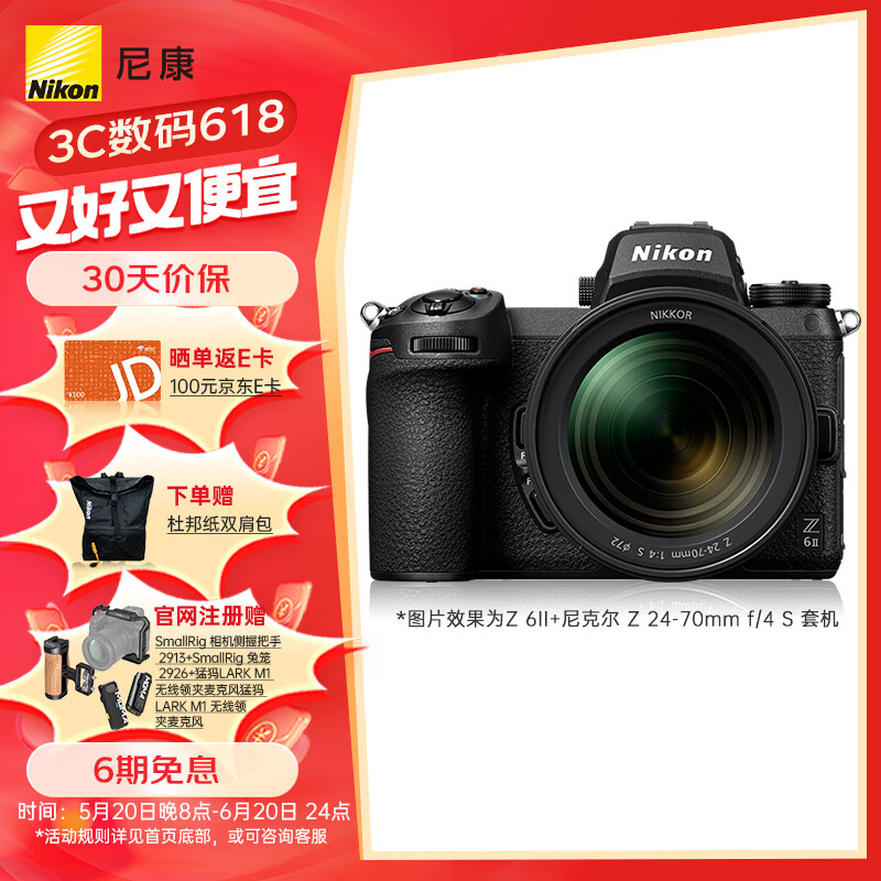 尼康(Nikon)Z6II(Z6 2/Z62)全画幅微单相机 微单套机 (24-70mm f/4 S微单镜头 约2,450万有效像素)价格:13599.00元!