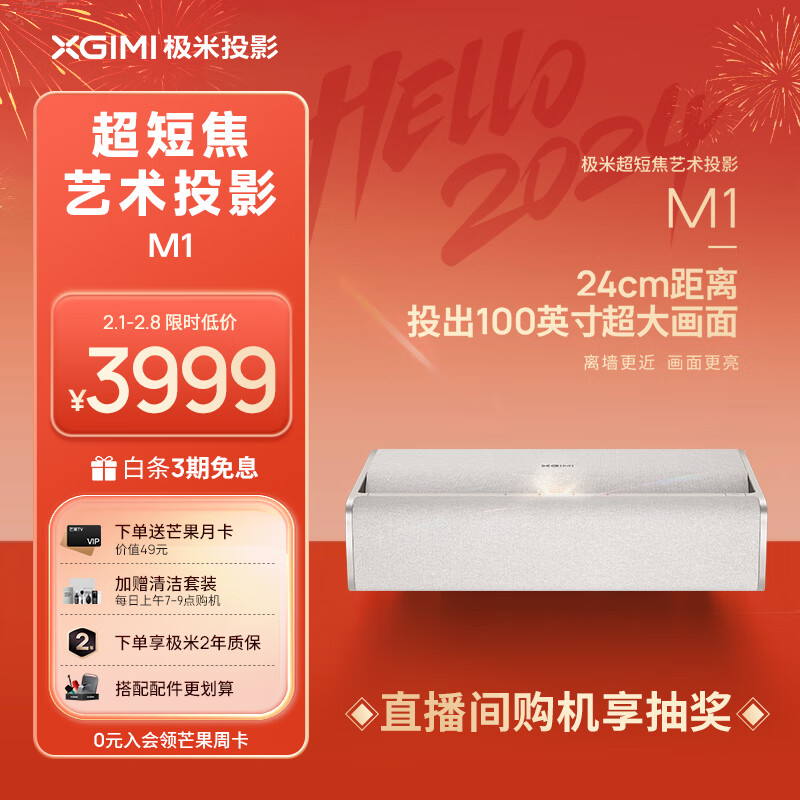 极米M1 超短焦艺术投影仪 投影仪家用(卧室推荐 贴墙投100英寸大屏 音画合一 防射眼 专属2年全保)价格:3999.00元!