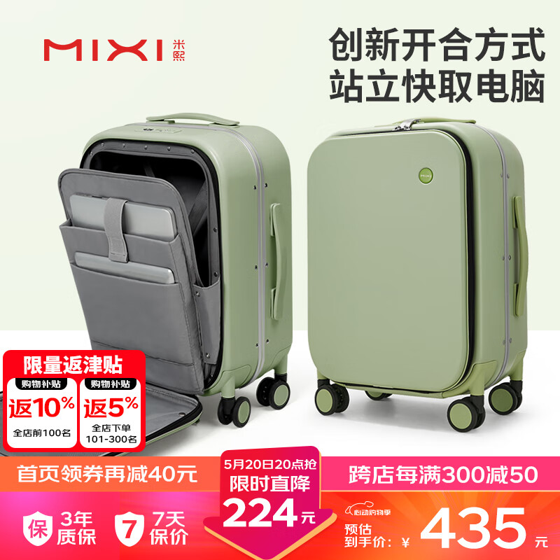 米熙前开盖拉杆箱子行李箱大容量密码铝框箱女旅行箱20英寸牛油果绿60价格:659.00元!