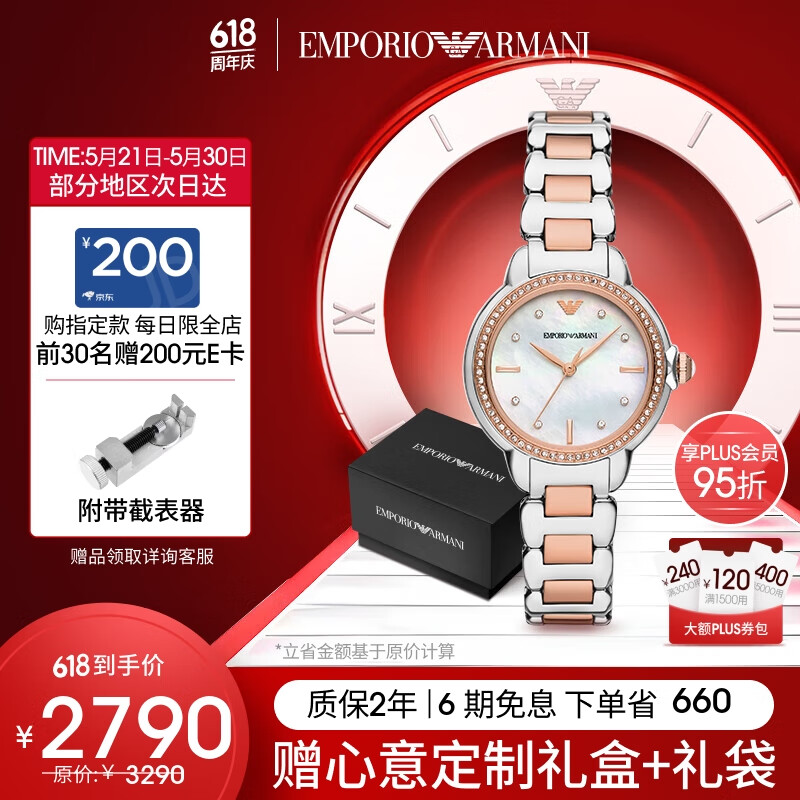 安普里奥·阿玛尼(Emporio Armani)手表女 气质白色珍珠贝母表盘镶钻石英女士腕表生日礼物AR11569价格:3290.00元!