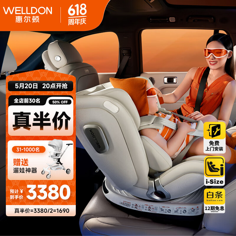 惠尔顿智转2婴儿童座椅0-4-7岁全龄i-Size认证舒适头等舱360度旋转价格:3380.00元!