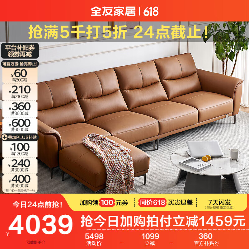 全友家居 皮艺沙发客厅现代简约头层牛皮直排一字真皮沙发家具112011价格:5498.75元!