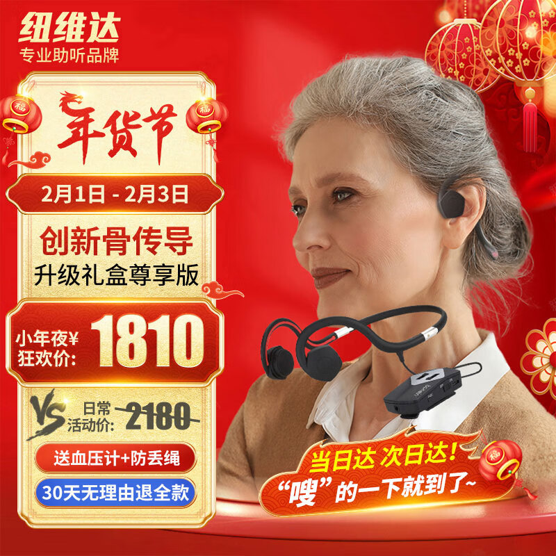 纽维达 未来客骨传导助听器老年人专用智能降噪大功率轻中重度耳聋耳背无线年轻人充电式双耳独立调节免验配价格:2580.00元!