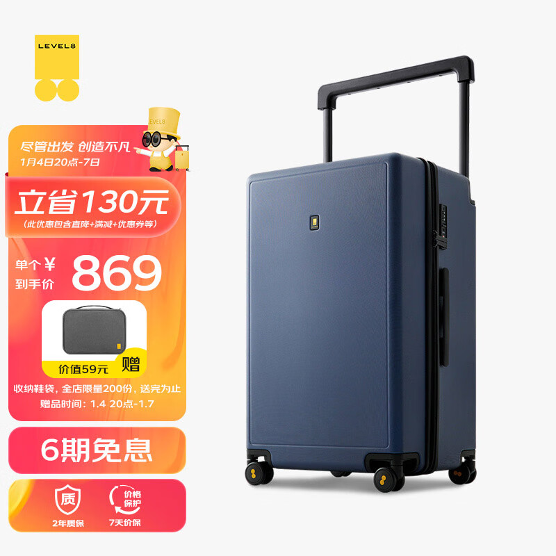 地平线8号(LEVEL8)行李箱 男女密码大容量万向轮26英寸宽拉杆大旅行家PC拉杆箱 蓝色价格:999.00元!