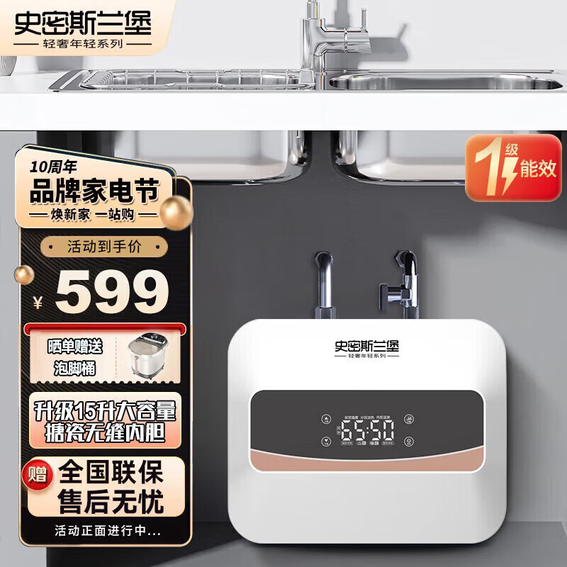 史密斯兰堡 电热水器储水式小厨宝家用15升1600W上出水台下式卫生间旋钮数显款暖水宝【自行安装】BLJ-Q15价格:539.00元!