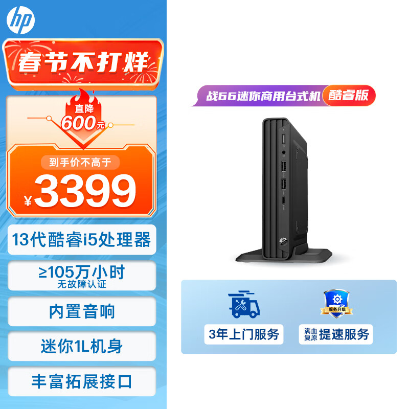 惠普(HP)战66Mini 迷你台式电脑主机 (酷睿13代i5-1335U 16G 1T) 内置音响 WiFi6价格:3399.00元!