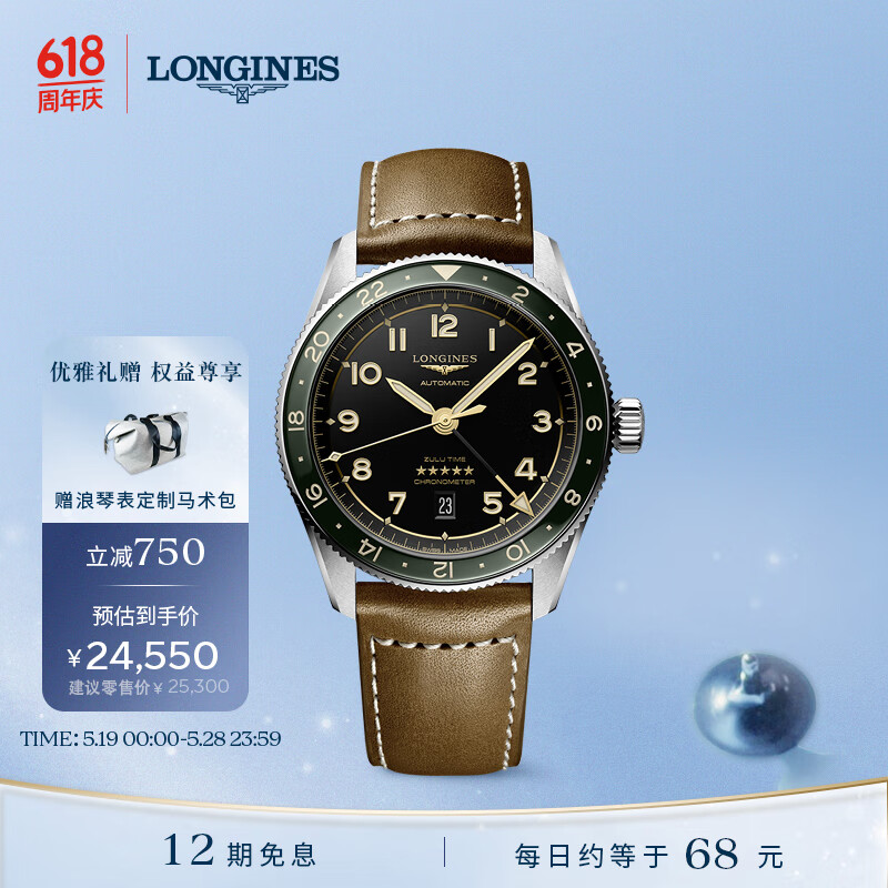 浪琴(LONGINES)瑞士手表 先行者系列祖鲁时间 机械皮带男表L38124632价格:24550.00元!