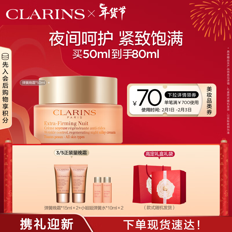 娇韵诗焕颜弹力晚霜50m面霜弹簧霜保湿提拉紧致饱满弹润护肤品新年礼物价格:840.00元!