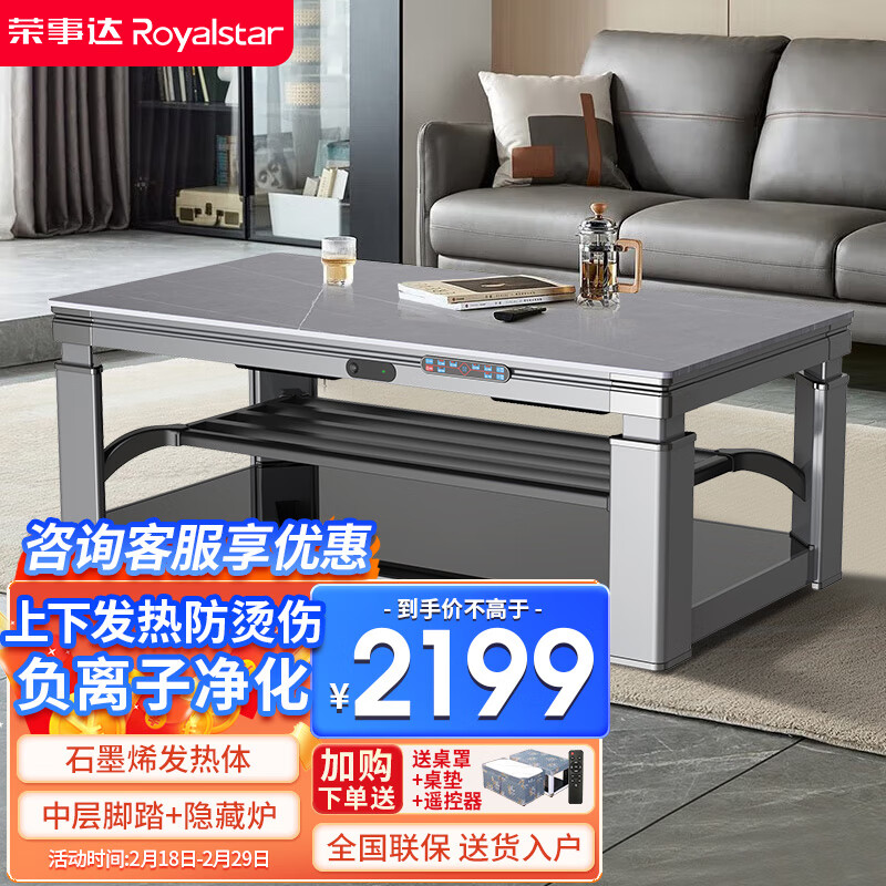 荣事达电暖桌1.38米长方形电炉取暖桌家用升降烤火炉茶几负离子烤火桌餐桌两用取暖炉取暖器RC-C8价格:2399.00元!