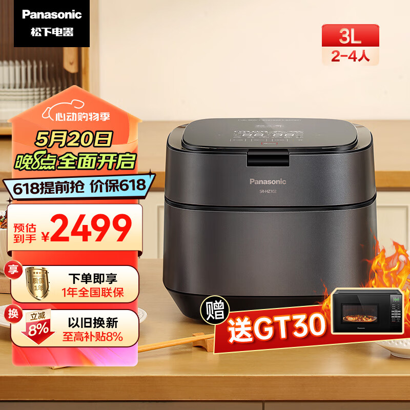 松下(Panasonic)饭之舞电饭煲3L五段IH变频加热电饭煲 家用电饭锅2-6人 备长炭加厚铜釜 可预约 SR-HZ102价格:2399.00元!