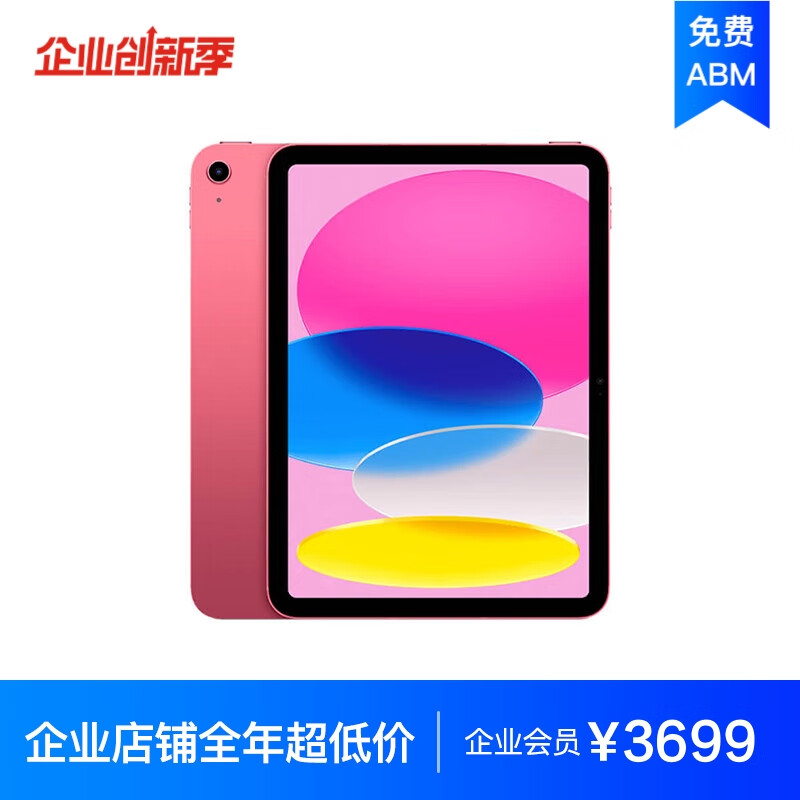 Apple iPad 10.9英寸平板电脑2022年款(256GB WLAN版/A14芯片/1200万像素/iPadOS MPQC3CH/A)粉色*企业专享价格:4799.00元!