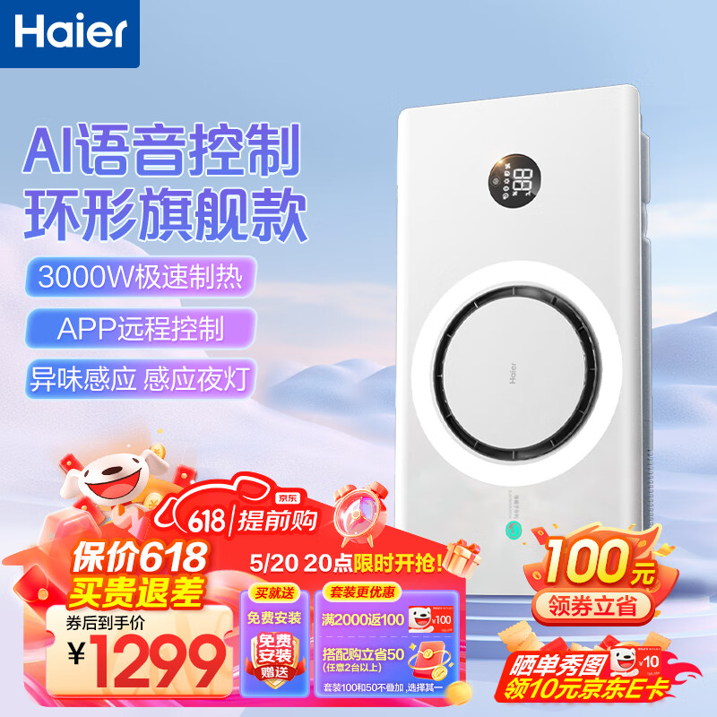 海尔风暖浴霸Q360proU1速热环形智能离线语音等离子除菌可外接照明价格:1399.00元!