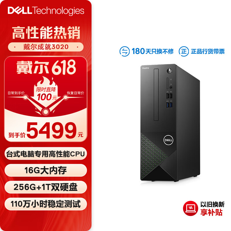 戴尔(Dell)成就3020 台式电脑主机(酷睿13代i7-13700 16G 256GSSD+1TB)单主机 高性能CPU价格:5499.00元!