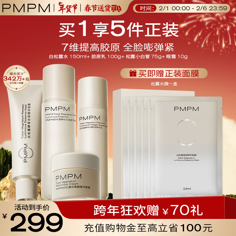 PMPM白松露胶原水乳面膜眼霜紧致提亮保湿面部套装护肤礼盒礼物价格:369.00元!