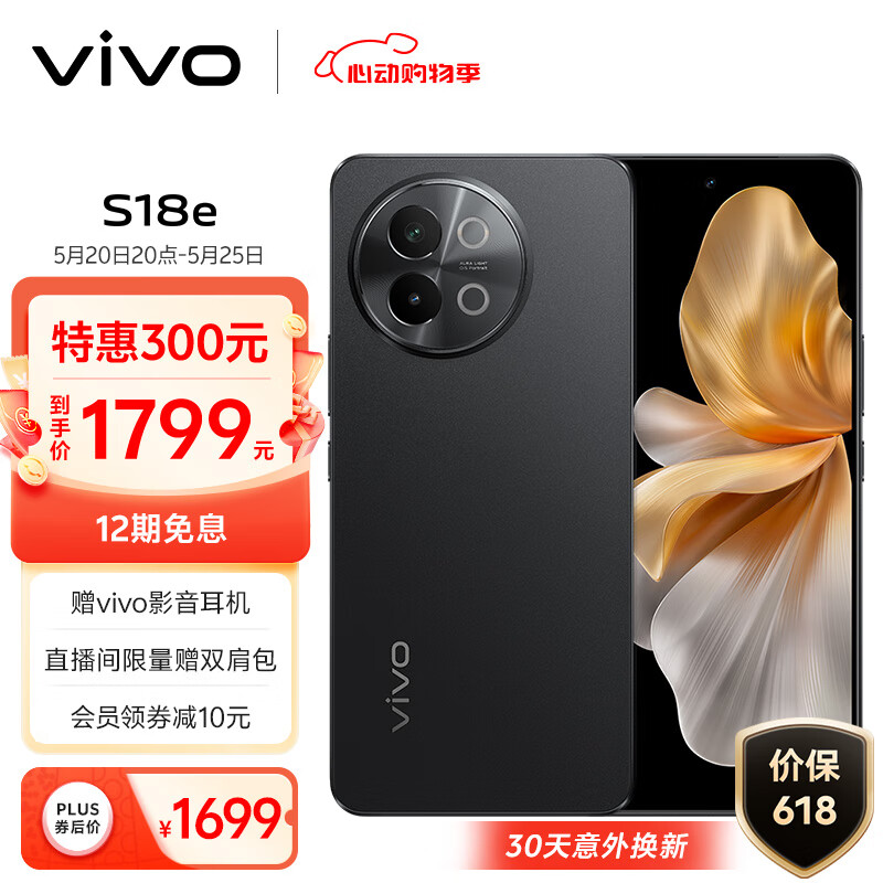 vivo S18e 12GB+256GB 星夜黑 7.69mm超薄直屏 80W 4800mAh超长续航 全新人像双补光环 拍照 手机价格:2099.00元!