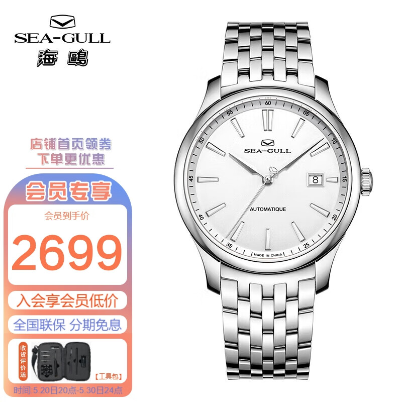 海鸥(SEAGULL)手表男士自动机械表 男表送男友礼物 日历钢带腕表816.12.1048价格:3099.00元!