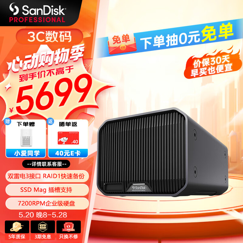 闪迪大师极锐 致镜12TB 双盘位企业级桌面移动硬盘 G-RAID? 磁盘列阵双雷电3接口内置7200转高速桌面存储价格:6099.00元!