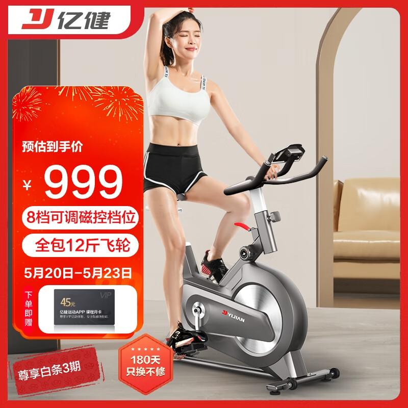 亿健(YIJIAN)动感单车家用8档磁控阻力调节健身车运动健身器材包安装深空灰价格:1099.00元!