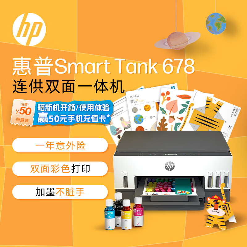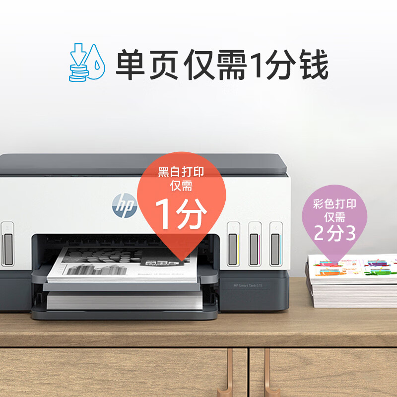 惠普(HP)678 彩色连供自动双面多功能喷墨打印机? 无线连接 微信打印 复印扫描 家用作业 商用办公价格:1329.00元!