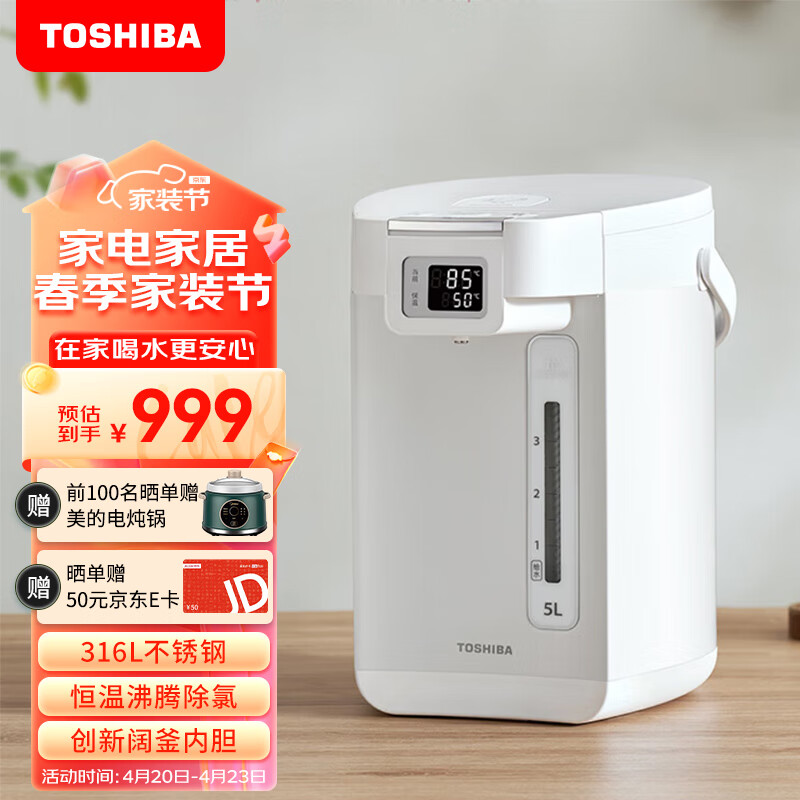 东芝(TOSHIBA)水物语电热水瓶5升316L不锈钢电热水壶大容量恒温沸腾除氯多段控温热水瓶TP-50DRTC(W)价格:999.00元!