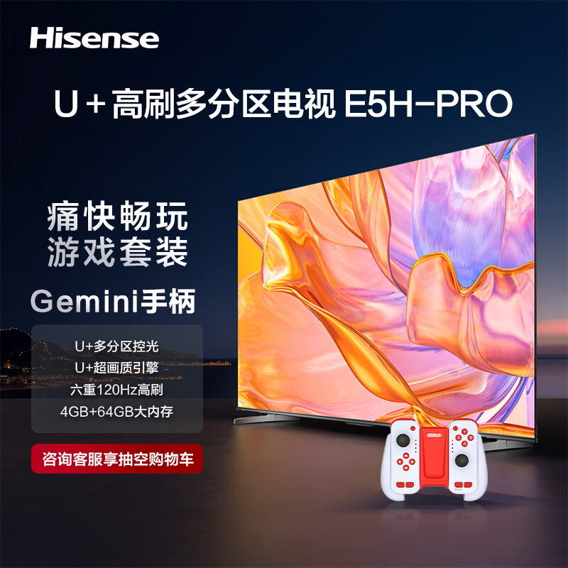 海信电视75E5H-PRO+运动加加Gemini分体手柄三合一体感交互手柄套装 75英寸 液晶平板电视机 以旧换新价格:4798.00元!