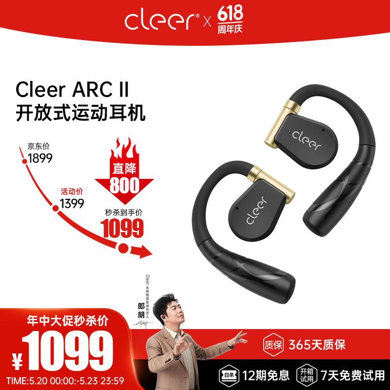 cleer任贤齐代言ARCII不入耳开放式智能运动无线蓝牙挂耳式跑步耳机骨传导升级适用华为苹果节日礼物 黑金色【运动版】价格:1099.00元!