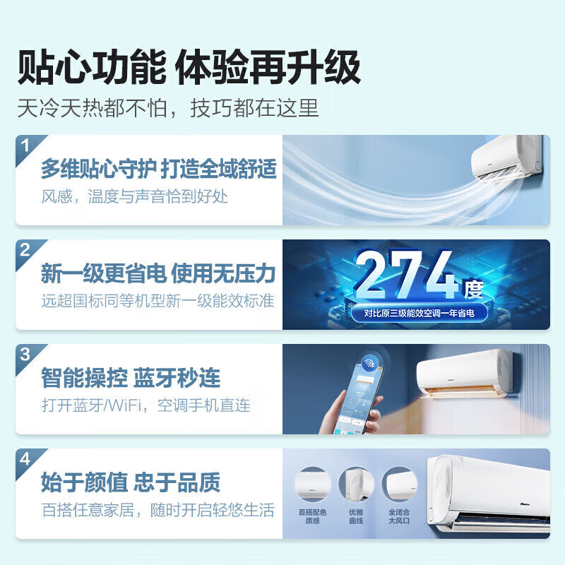 海信1.5匹空调挂机新一级能效家用卧室大风量变频冷暖节能省电静音高温清洁防直吹KFR-35GW/S511-X1价格:2199.00元!