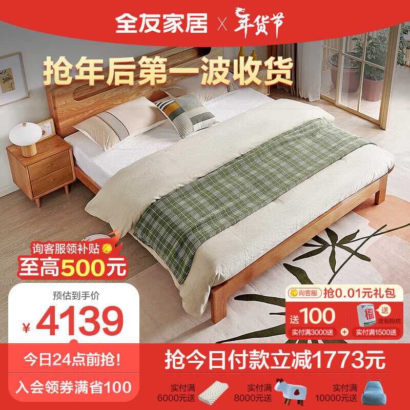 全友家居 实木床 北欧卧室家具实木双人床 进口北美橡木框架床DW1008价格:5912.86元!