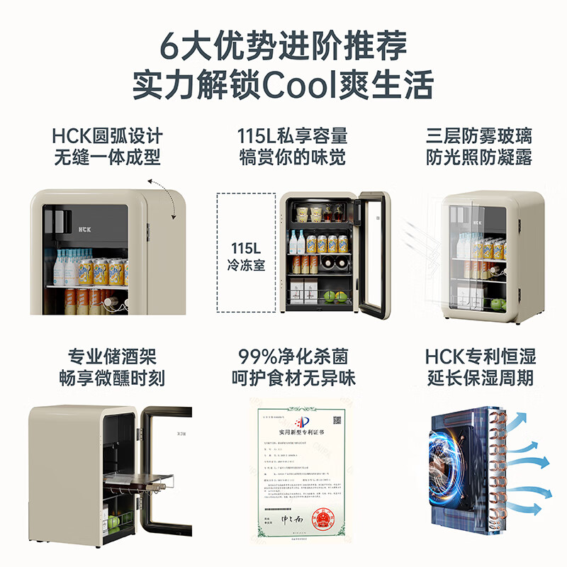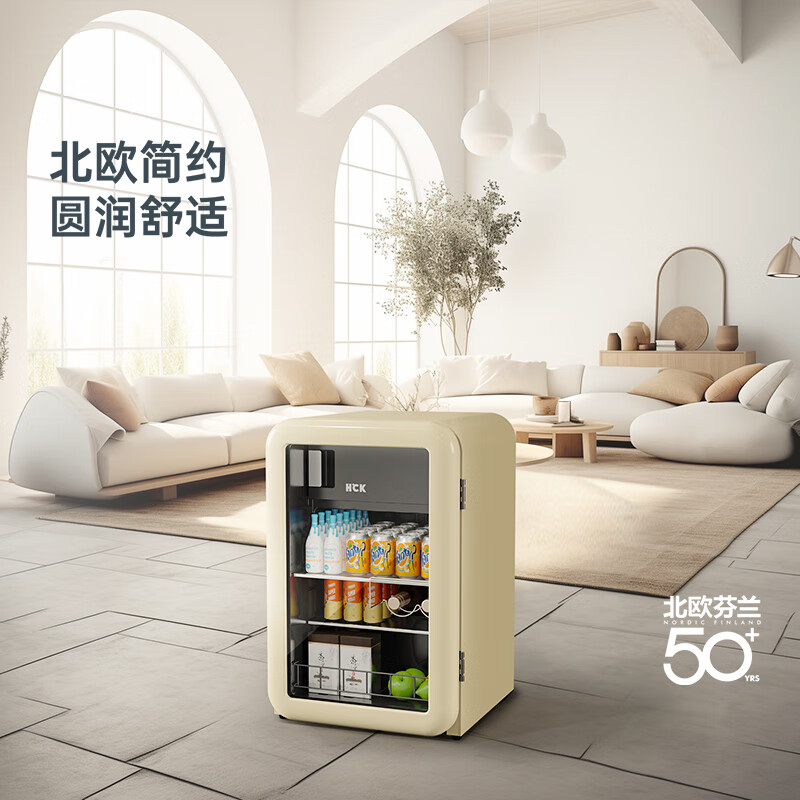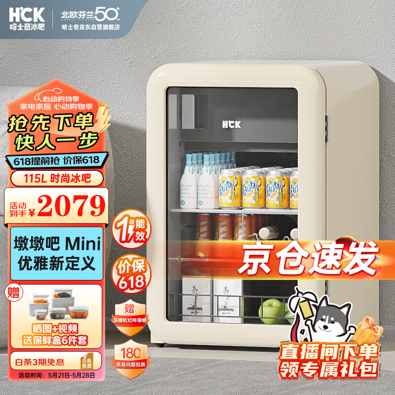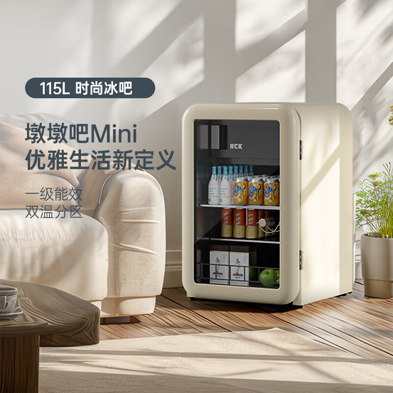 哈士奇冰吧复古小冰箱冷冻酒饮冷藏保鲜租房家用小型饮料冷柜智能恒温墩墩吧Mini115升SC-130RD-S浅黄色价格:2279.00元!