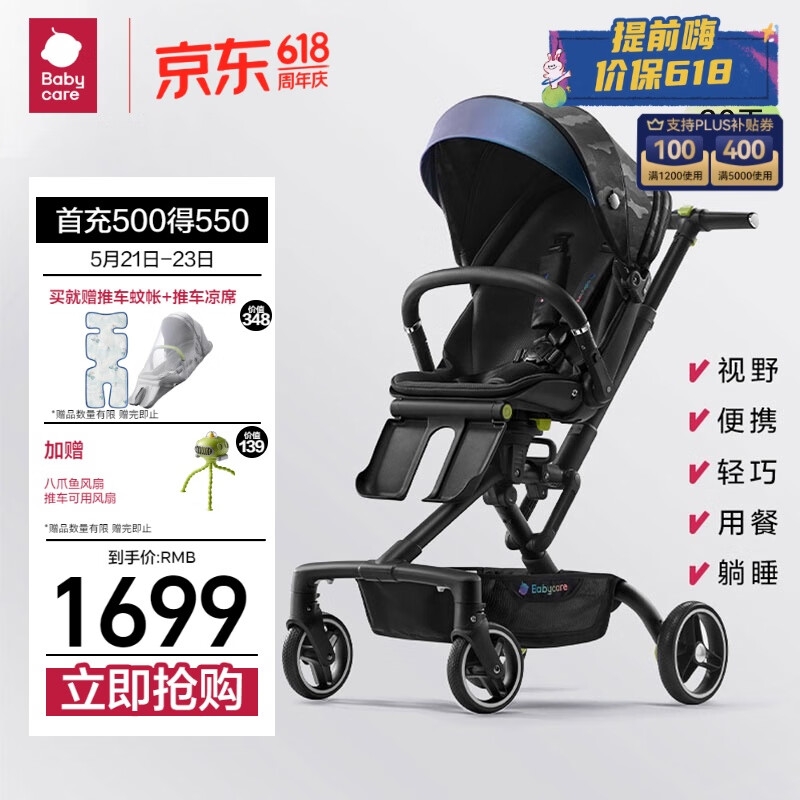 babycare头等舱婴儿推车高景观遛娃神器轻便可折叠可坐躺双向溜娃 暮夜黑价格:1699.00元!