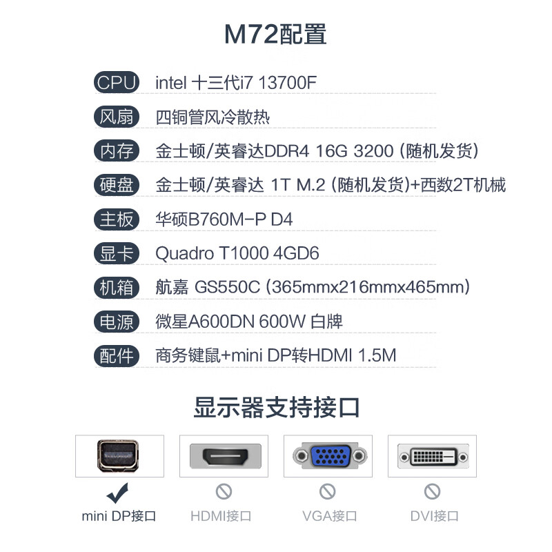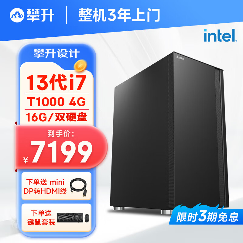 攀升M72 13代i7 13700F/丽台T1000/1TM.2+2TB/16G/商务键鼠/设计渲染建模专业图形设计台式组装电脑价格:7699.00元!