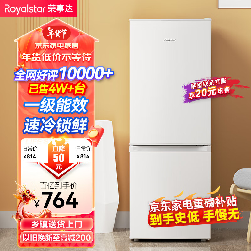 荣事达(Royalstar)183升小冰箱小型家用出租房办公室宿舍双开门两门双门二门电冰箱节能省电低音白色BCD-183L9RSZ价格:764.00元!