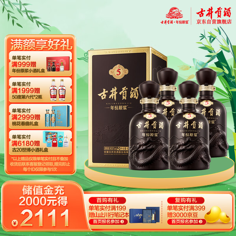 古井贡酒年份原浆 古5 浓香型白酒 40.6度425ml*4瓶 整箱装价格:658.82元!