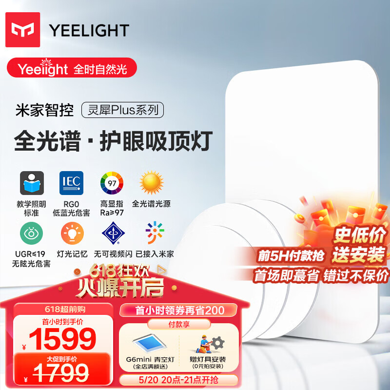 Yeelight易来灵犀Plus智能led全光谱低蓝光吸顶灯客厅卧室餐厅超薄灯具价格:2299.00元!