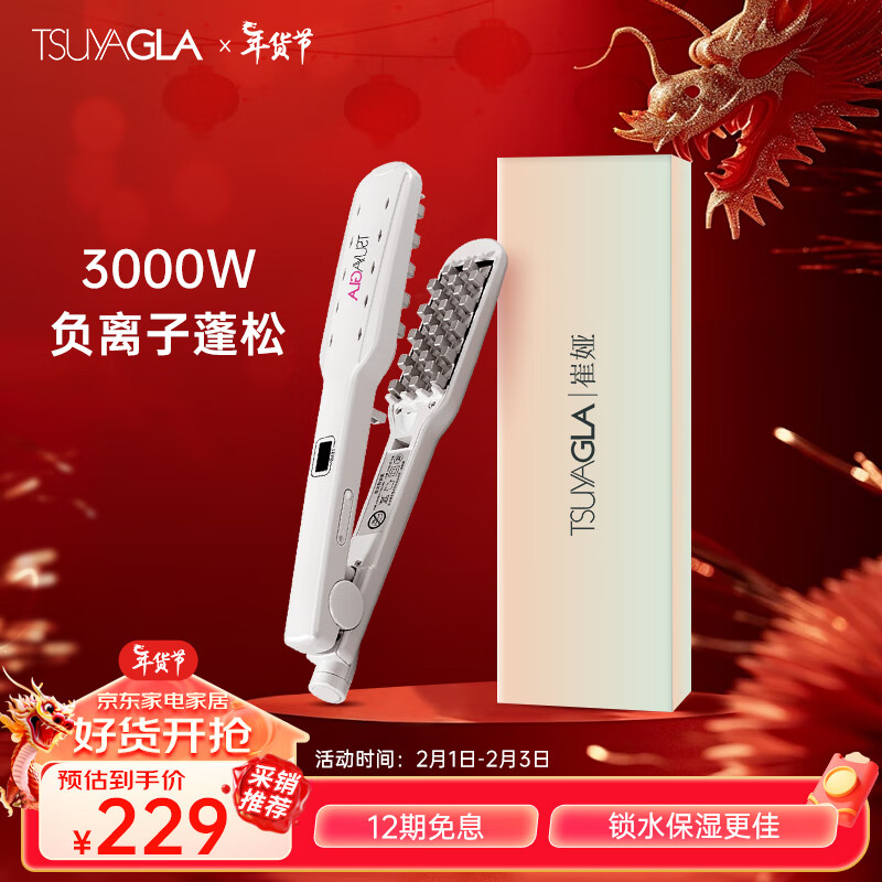 崔娅(TSUYAGLA)头发蓬松神器烫发夹板 垫发根玉米须夹板直发卷发棒女 卷直两用防烫拉直板 白色TP19-01价格:269.00元!