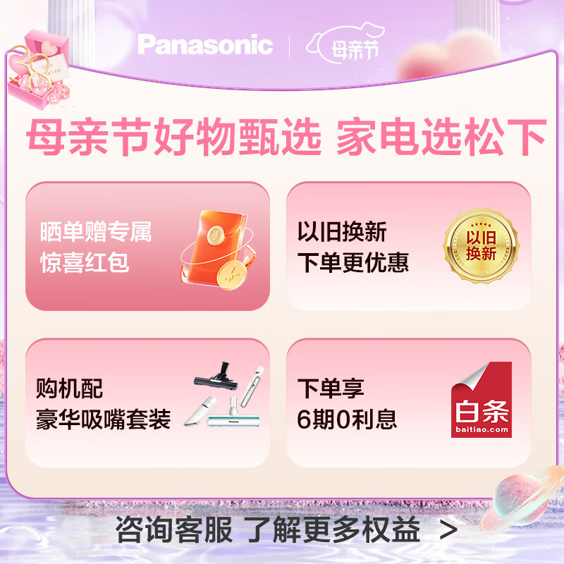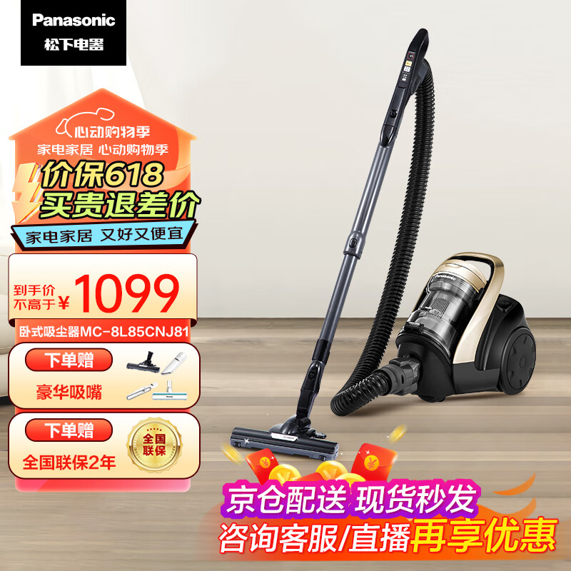 松下(Panasonic)MC-8L85CNJ81 大吸力 轻音节能 床铺地毯 家用有线卧式吸尘器(雅金) 宠物 家庭适用价格:1099.00元!