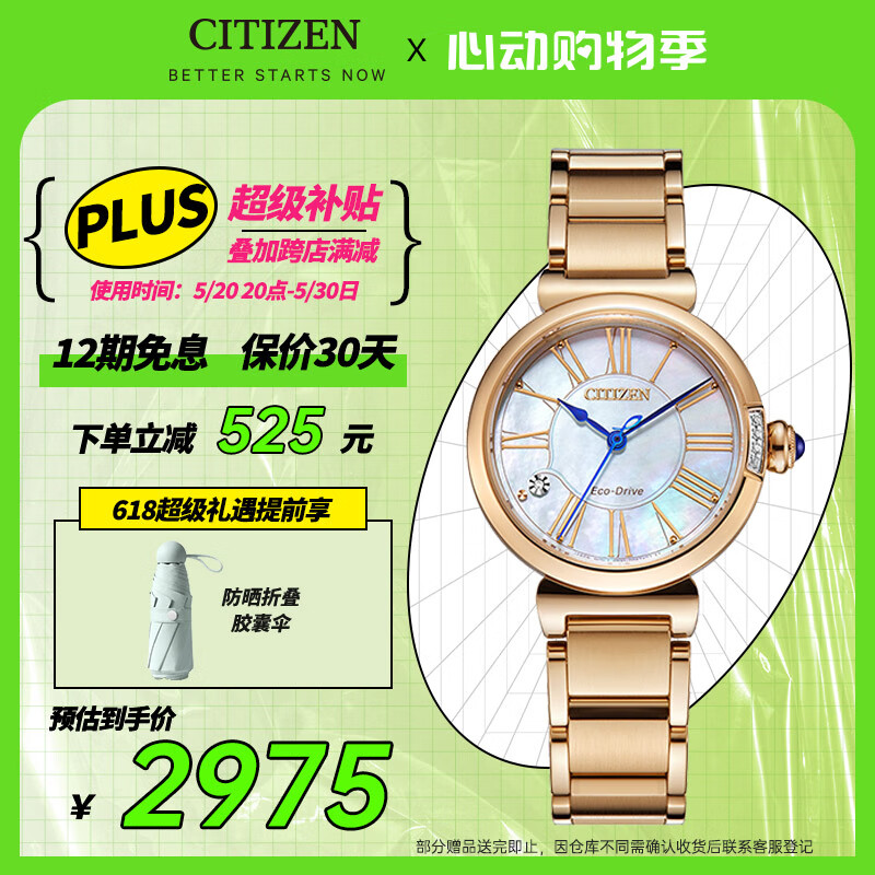 西铁城(CITIZEN)手表女日韩表小铃花光动能贝母盘钢带时尚情人节礼物EM1063-89D价格:3500.00元!