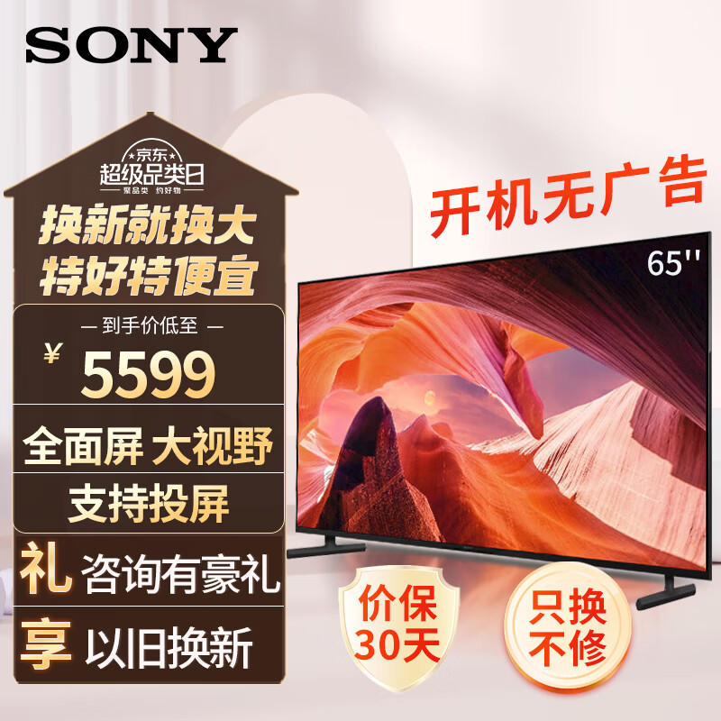 索尼(SONY)KD-65X80L 65英寸 4K超高清HDR X1芯片 智能远场语音 杜比视界全景声 高色域液晶屏电视价格:5599.00元!