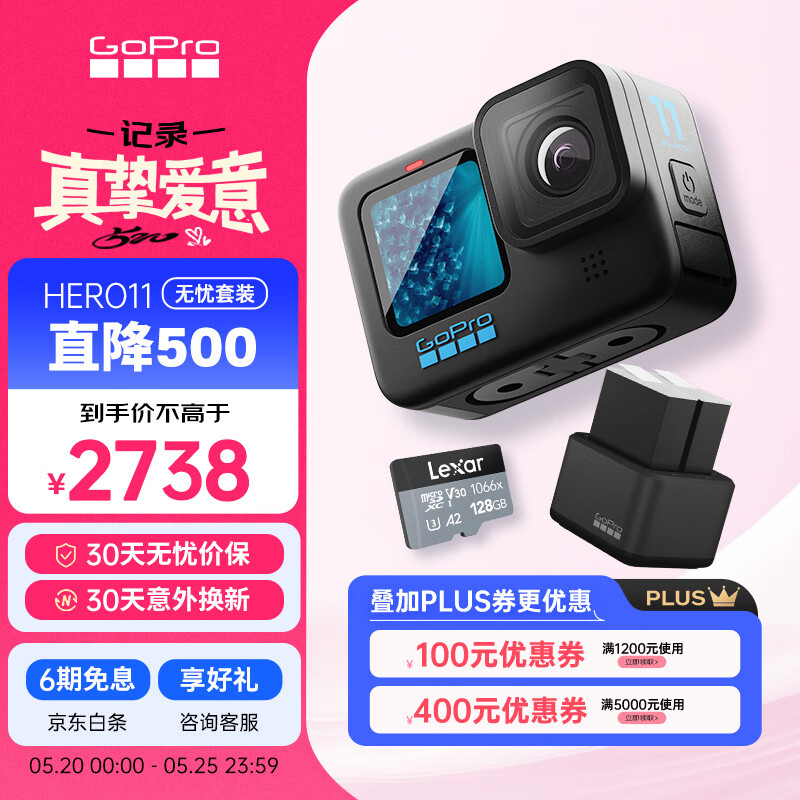 GoPro HERO11 Black防抖运动相机 增强续航 防水相机 vlog潜水滑雪摄影摄像 【单机+增强双充+128G】价格:2710.60元!