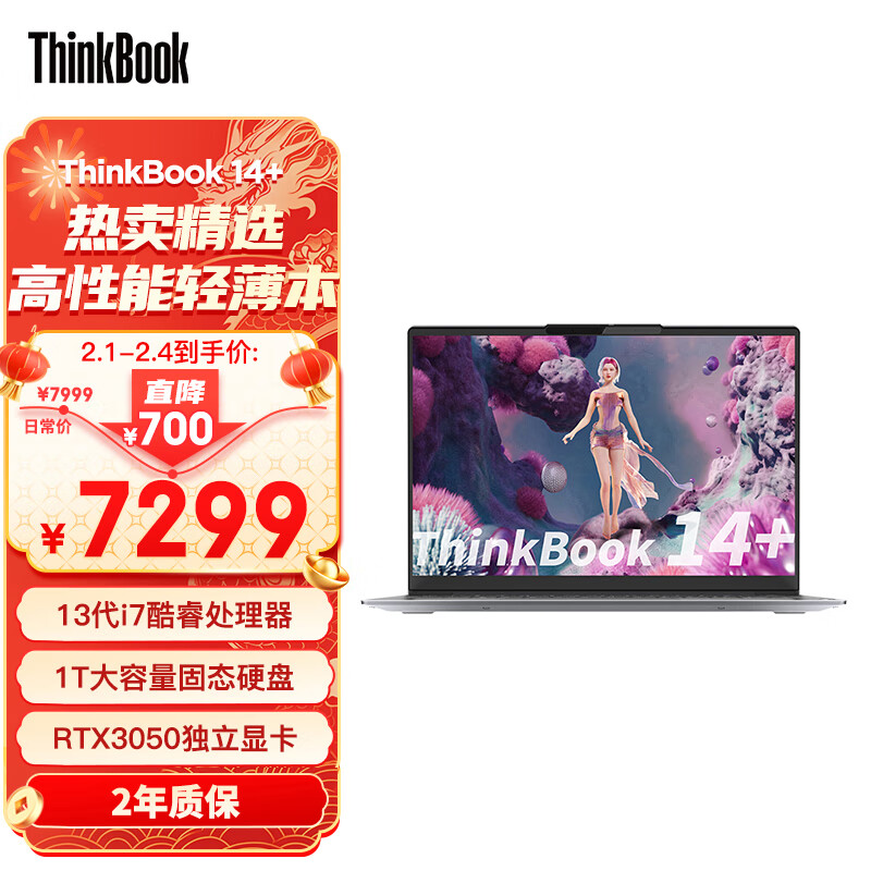 ThinkPad联想ThinkBook 14+ 英特尔酷睿i7 14英寸便携轻薄游戏创作本13代i7-13700H 16G 1TB RTX3050 2.8K价格:7299.00元!