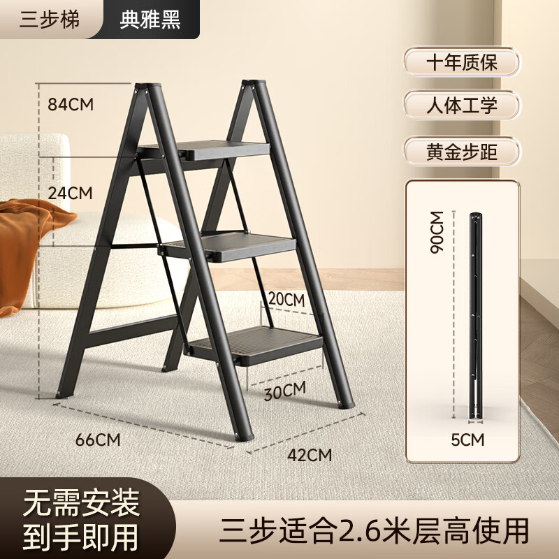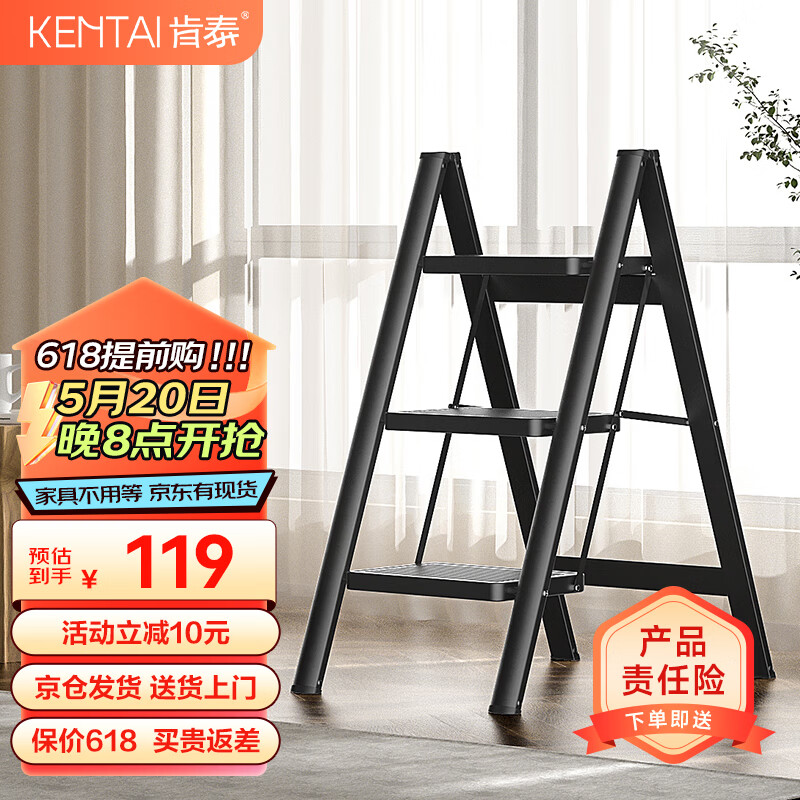 肯泰(KENTAI)梯子家用折叠人字梯加厚钢管铁梯加宽踏板步梯工程梯F3-H3价格:230.00元!