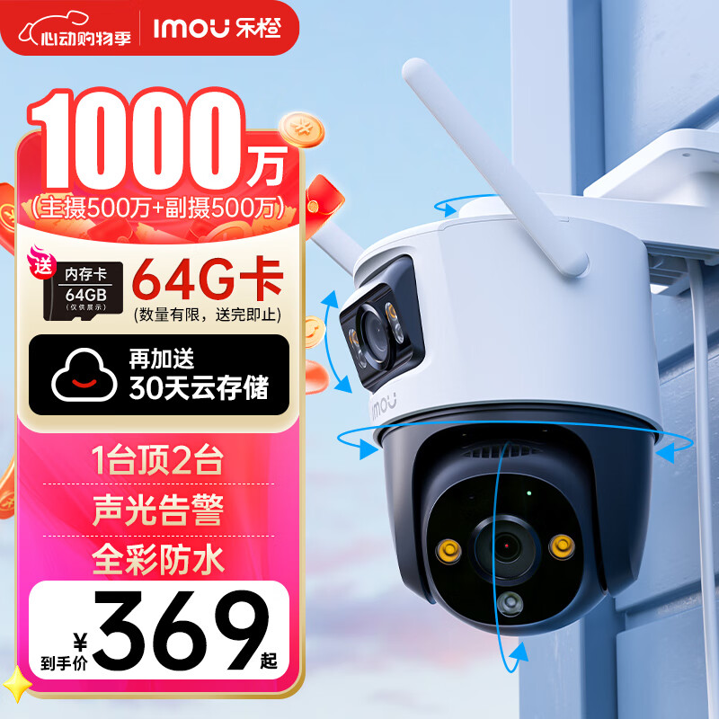 乐橙 监控摄像头 TS7双摄1000万高清 商用家用 户外室外无线监控器360度无死角带夜视 双镜头双画面价格:369.00元!