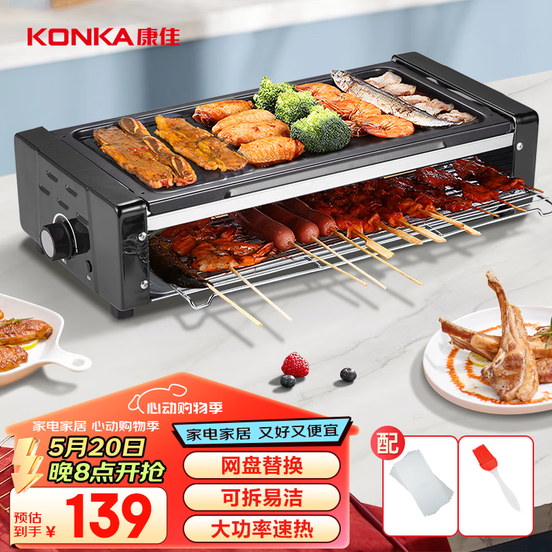 康佳(KONKA)电烧烤炉 双层烤串机不粘电烤盘烤肉机室内无烟烧烤架子韩式烤肉锅电烤炉 KEG-W261A价格:139.00元!