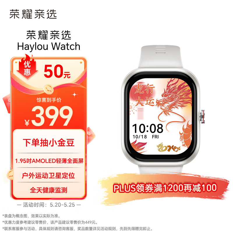 荣耀亲选 Haylou Watch 智能手表 1.95吋AMOLED轻薄屏 户外运动卫星定位 全天健康监测 星光白价格:399.00元!